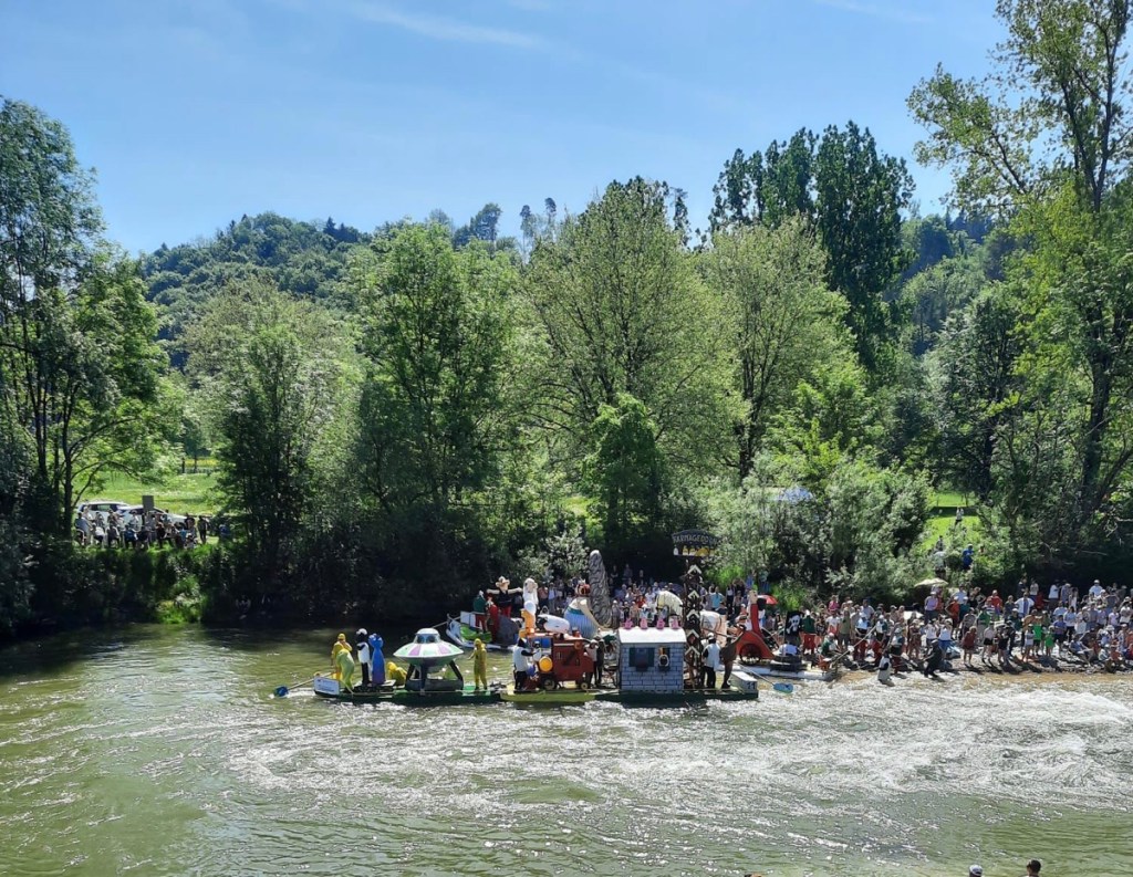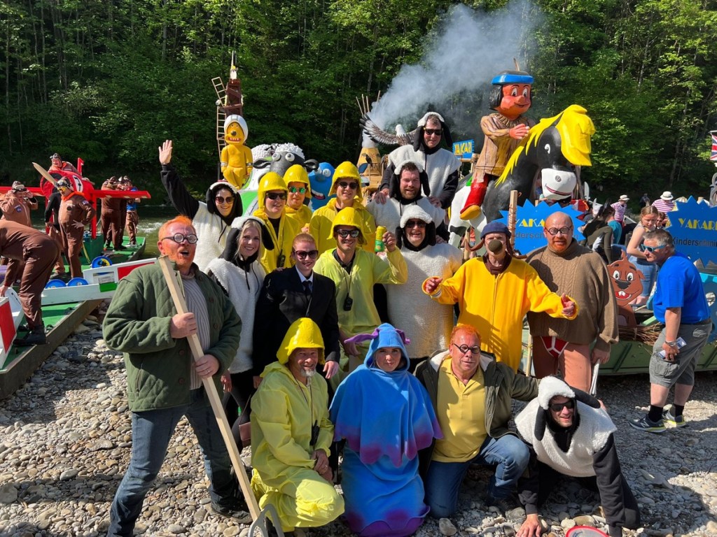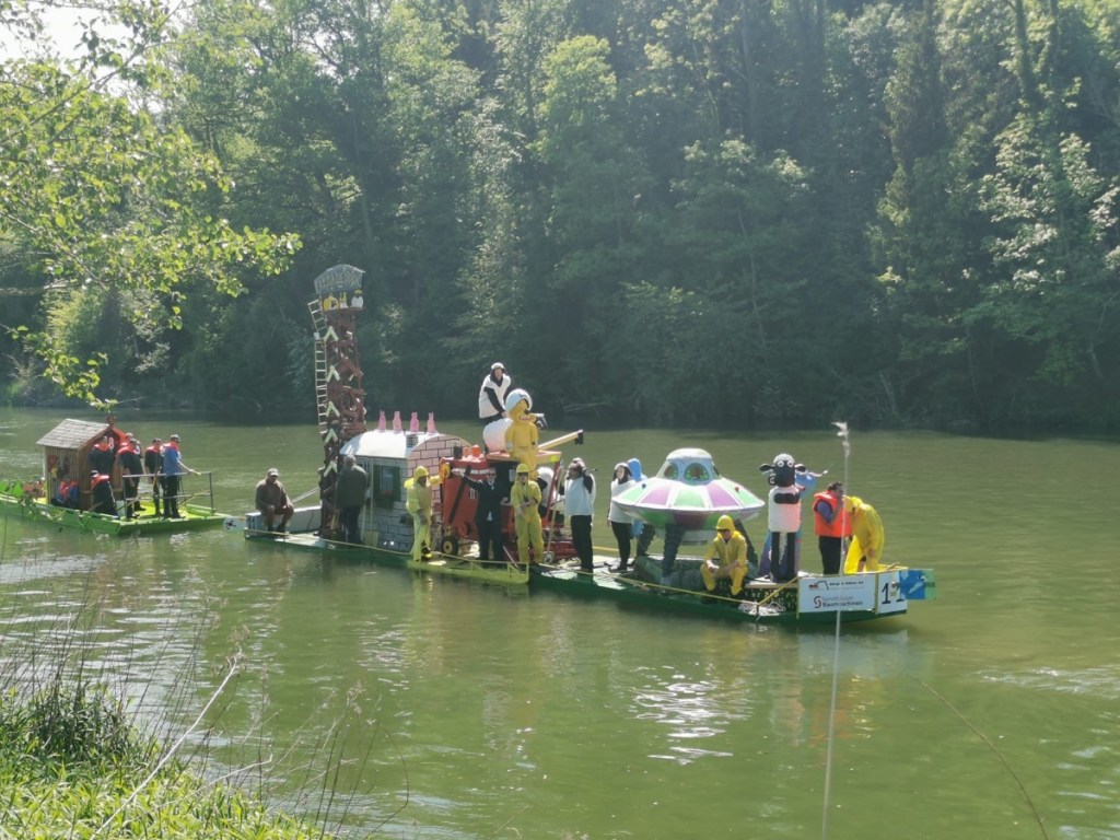 Nach zweijähriger Zwangspause fand das Flossrennen endlich wieder statt. Mit dem Thema „Shaun das Schaf“ haben wir den Zuschauern am Flussufer unser Floss präsentiert.